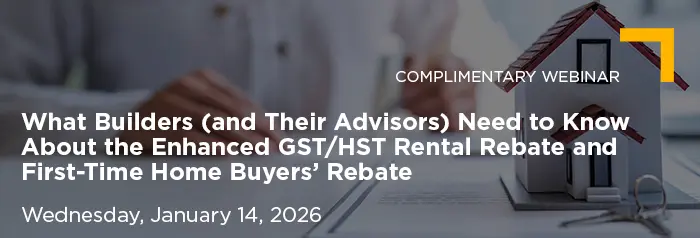 What Builders (and Their Advisors) Need to Know About the Enhanced GST/HST Rental Rebate and First-Time Home Buyers' Rebate
