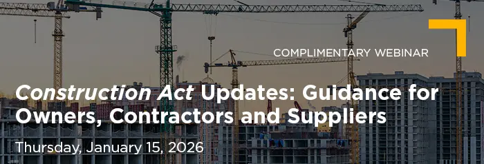 Construction Act Updates: Guidance for Owners, Contractors and Suppliers