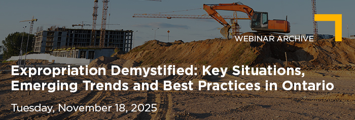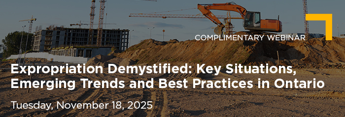 Join members of our Expropriation Group for an insightful discussion on the latest developments and best practices in Ontario expropriation law. Whether you are advising clients, managing municipal projects or handling a claim, this session will help you better understand the legal landscape and practical strategies for success.