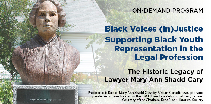 During this informative and engaging session, you will hear from law students, law educators, lawyers and legal sector representatives, as they discuss the profound impact Mary Ann Shadd Cary had on the fight for equality. Presenters will also examine