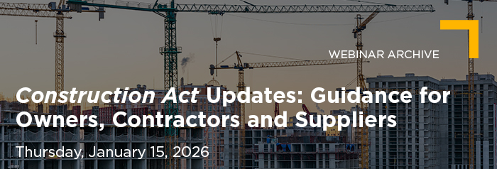 Construction Act Updates: Guidance for Owners, Contractors and Suppliers