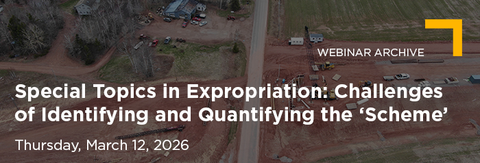 Join members of our Expropriation Group for a focused discussion on the legal foundations of the expropriation scheme, its practical applications and the challenges of quantifying its impacts in valuations. This session is ideal for professionals seeking a deeper understanding of how the scheme is determined and how it is considered when attempting to determine the highest and best use and market value.