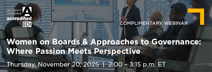 Join us for an online panel discussion featuring leading women from the public and private sectors who hold important board positions. Panellists will share stories about how they secured a seat at the table as well as the ways they have positively influenced approaches to governance and overcome barriers.